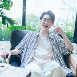 Snow Manのリーダーとして、パフォーマンスや精神的支柱としても存在感を示している岩本。この夏も多忙な日々を送っている岩本は、主演ミュージカル「キャッチ・ミー・イフ・ユー・キャン」の稽古を終え、おだやかな笑みをたたえながら撮影現場に登場。役のために変えたという髪色とあいまって、より一層オーラを増した姿で2ルックの衣装を着こなし、持ち前の高い表現力でカメラと向き合った。ミニマムな空間にノーブルさが際立つ1トーンコーデでは、大人な夏の男を演出。また、やんちゃな表情やポーズで現場でも「かわいい!」の声が上がった’90sスタイルでは少年のような佇まいを見せた。