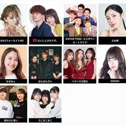amaneあまね、あみか(フォーエイト48)、えいしとさなです。、ESPOIR TRIBE-エスポワール・トライブ-、えみ姉、おさき、きりまる、なるねぇ、はねまりチャンネル、ばんばんざい、ヘラヘラ三銃士、MINAMI、むっかなチャンネル、ゆん、夜のひと笑い、ろこまこあこ and more