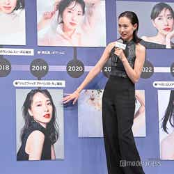 2018年より同ブランドのミューズを務める戸田。ミューズを務めた6年間で自身のライフスタイルにおいて進化したことはあるか聞かれると「結婚して出産を経たので、ライススタイル、ライフステージは大きく変わったなと思いますね」としみじみと語った。ミューズに就任したのが20代から30代に変わるタイミングだったそうで「それまでは肌のケアに対してそこまで関心がなかったんですね。メイクさんに『今日ちょっと浮腫んでるね』とか、鍼灸師の方に『ちょっと顔がくすんでいるね』とか言われて、“そうなんだ!”って初めて気づいたくらいで、自分でちゃんと見られてなかったんですけど、ミューズをやらせてもらうようになってからはちゃんと自分の肌と向き合おうという気持ちになって、今では自分の肌ってこんな状態だな、くすんできたからケアしたほうがいいなって見えるようになってきたので、肌への向き合い方もこの6年間で大きく変化して進化したのかなと思いますね」と明かした。
