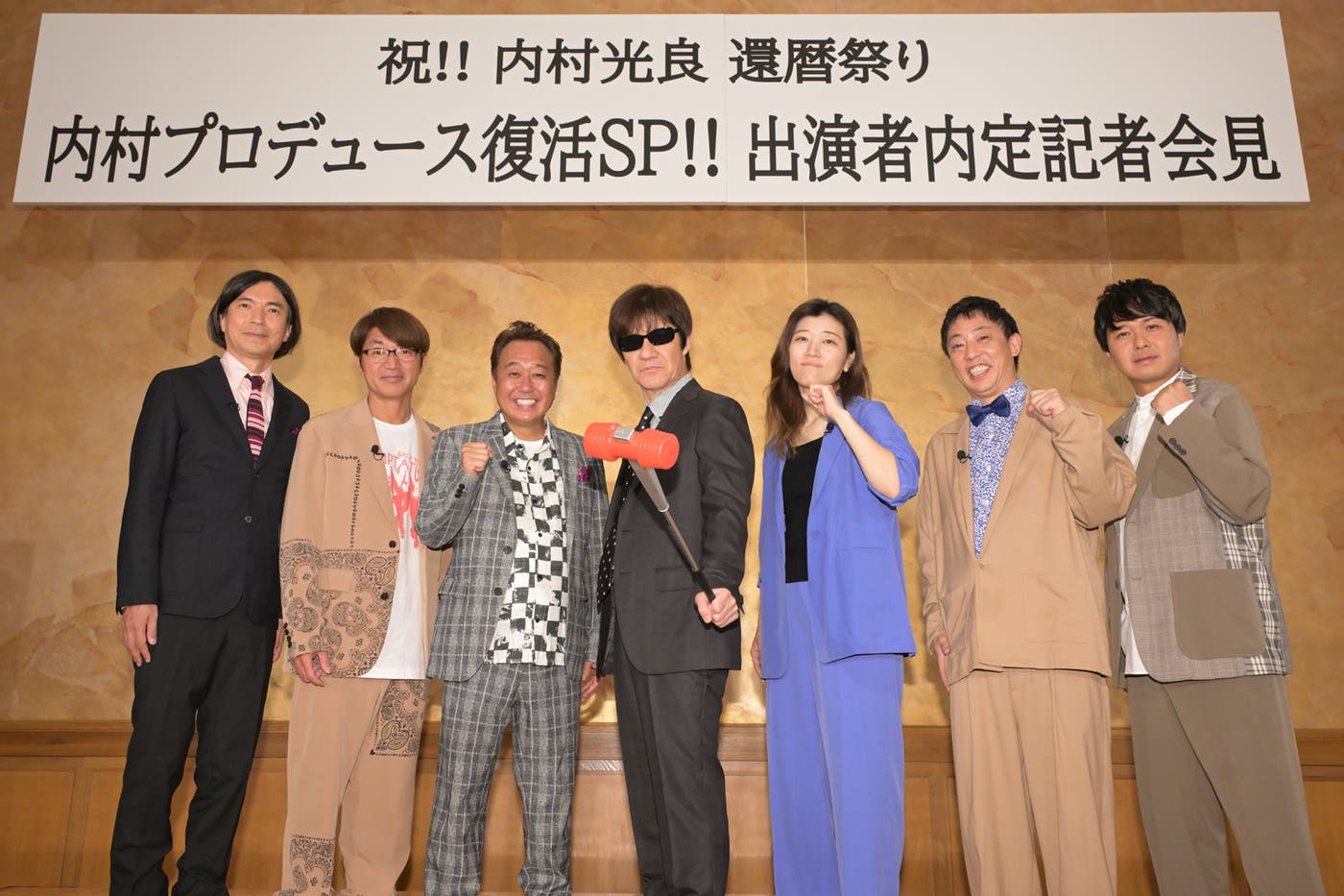 この秋、テレビ朝日開局65周年記念『祝!内村光良還暦祭り 内村プロデュース復活SP!!』が放送。SPの収録に先駆けて出演者“内定”発表会見が開催され、ウッチャンナンチャン・内村光良、さまぁ~ず、ふかわりょうら「内P出てた芸人」、ヒコロヒー、さらば青春の光ら「内P見てた芸人」が登壇した。