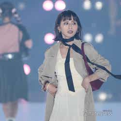 秋らしいトレンチコートにホワイトのセットアップを合わせたコーディネートで登場したロン。眉上までカットした“オン眉”前髪を披露し、雰囲気をガラリと変えていた。「関コレ」テーマは「passion」