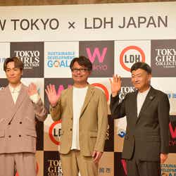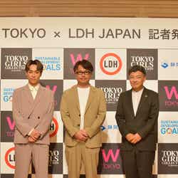 本日の記者発表会には、本プロジェクトのリーダー的存在でもあるEXILE TETSUYA、青木充(東京ガールズコレクション実行委員会、株式会社W TOKYO 取締役COO)、そして静岡市の難波喬司市長が登壇し、プロジェクト実施に向けた想いを語った。TETSUYAは「2022年11月にLDH JAPANとW TOKYOがパートナーシップを組んでプロジェクトを開始してから約1年半が経ちました。ワークショップショーには、今までに2万人以上の方々が参加してくれました。TGCのステージでは、LDH JAPAN所属のアーティストと地元の学生さんとコラボレーションをしています」と説明。「学生の皆さんには、今まで体験したことのないような景色をステージ上で見ていただけているんじゃないかなと思っています。そしてそれが一生の思い出になったり、夢につながる体験になればという思いで、SDGs目標『4.質の高い教育をみんなに』を掲げながら、創り上げています」と手応えを語った。