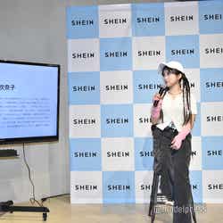 コラボアイテムについては「身長がコンパクトな感じなのでそういった方に着こなせるものを選びました。でもどなたにでも着こなしていただけるかと!」と明かし、「普段からモノトーンの服を選びがちなのでカラフルなものを選びました」とこの日着ていた鮮やかなカラーのアームウォーマーやアクセサリーについても触れていた。