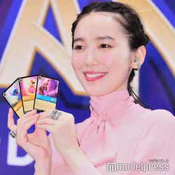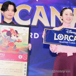 タカラトミーは、ディズニーのキャラクターをテーマにしたカードゲーム「LORCANA(ロルカナ)」を来年より日本で展開する。この日は飯豊とともに同商品のアンバサダーを務める千葉雄大も出席した。当日のファッションのポイントについて、千葉は「ディズニー映画の『ファンタジア』をイメージしたお衣装を着させていただきました」と明かし、飯豊は「ラプンツェルがディズニーのキャラクターの中でも好きなんですけど、今回はラプンツェルを意識したお衣装を着させていただきました」とにっこり。