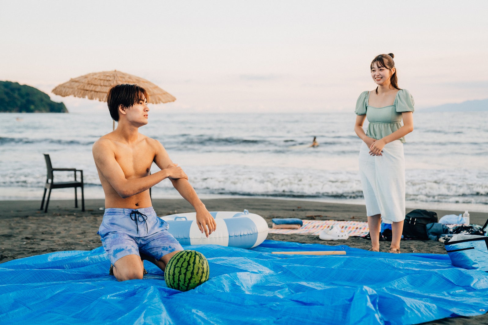 一方で、そうたちのチームは水着姿に着替え、海デートへ。そう考案の「男性メンバーが今話したい女性メンバーと2ショットになれる」権利を懸けたビーチフラッグ対決では田中学人(以下、ガクティー)が勝利するも、そうにその権利を譲る男気を見せた。意中のあんころとの2ショットタイムをゲットしたそうは、「あんちゃんへの気持ちをぶつけたい」と突如素手で“スイカ割り”を始める。第1話のスタジオでは、別番組にて共演があった菊池も「そうくんは天然なの、(Travis Japanの)松田元太と並ぶレベル」と明かしていたそうの“天然すぎる行動”にスタジオは騒然。菊池は「一回カメラ止めて!責任者呼んで!(笑)」と叫び、スタジオは笑いに包まれた。(modelpress編集部)