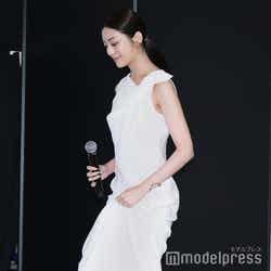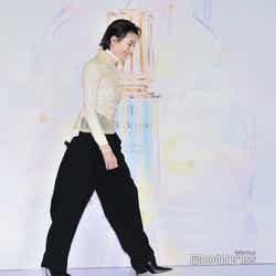 同ブランドのジャパンアンバサダーを務めている宮沢は、衣装について「ナチュラルな素肌感を表現しつつ、輝きが表現できたらいいなと思って、この衣装を選びました」と笑顔。仕事で輝き続けるための源を問われると「物語の中である役を生きるというのが仕事なんですけど、その作品を見てくださる方がいて、見てくださった方の人生のエッセンスになるようなことになるように頑張るっていうことが、一番の源ですね。やっぱり、見てくださった方の心が揺さぶられるようなお芝居をしたいっていう気持ちが、一番の原動力になっていると思います」と考えを明かした。いま挑戦したいことを問われると「プライベートでも、意外とやったことのないことをやるのが好きで。スポーツでも、去年・一昨年からスノボーを始めたり。やったことないことはとにかく、やってみたくて」「絵を描くのが好きなんですけど、絵の展覧会というのを、いつかこういう大きな素敵な会場でできたらいいなっていうのは、一番の夢だったりします」と語った。