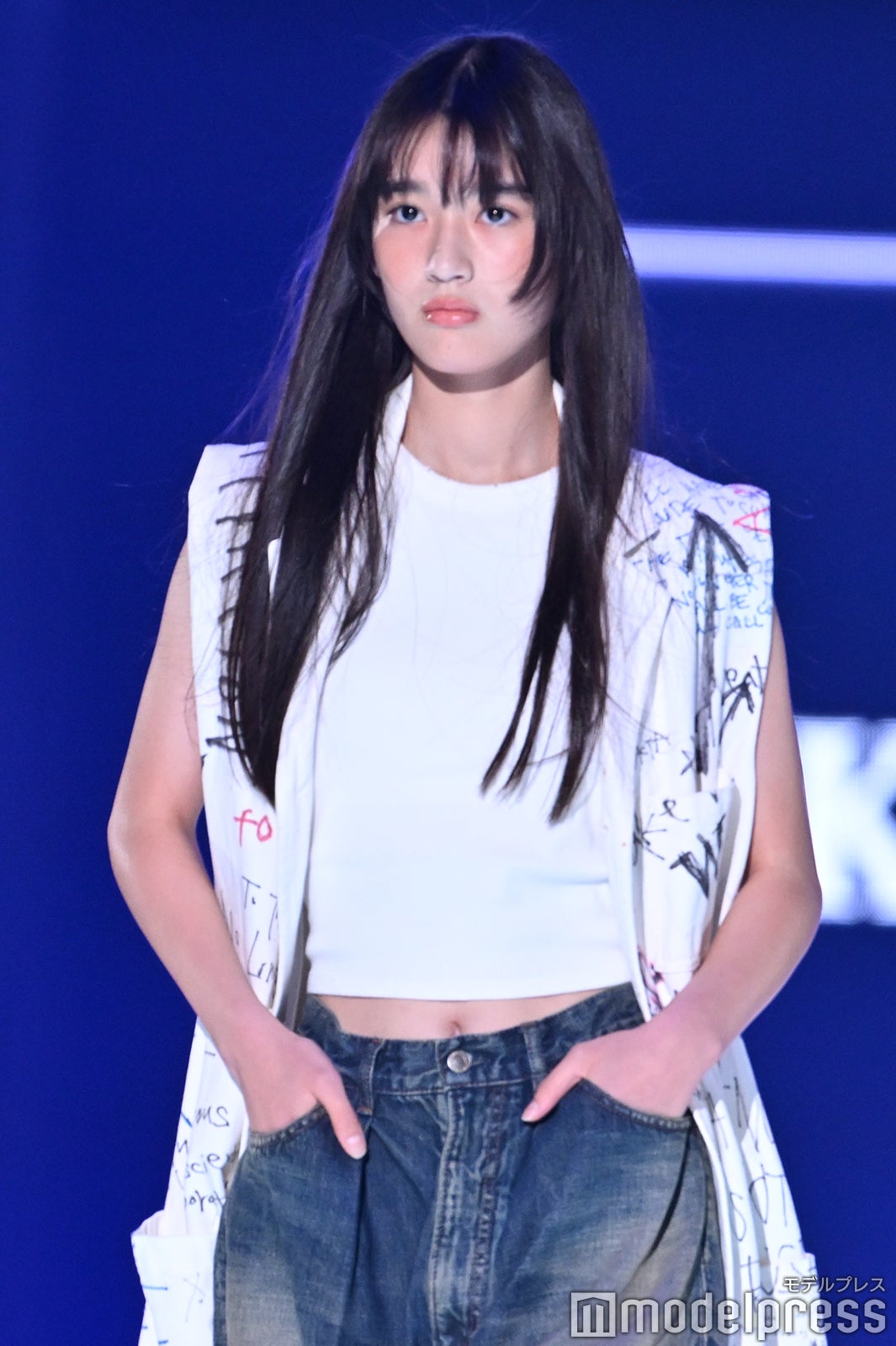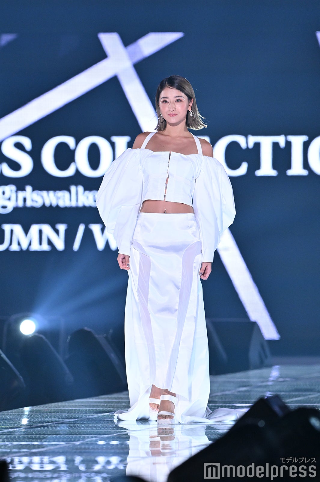 みちょぱは、デコルテとくびれをちら見せした真っ白なウェディングドレスのようなワンピースを着こなしてランウェイ。8月10日に夫でタレントの大倉士門との披露宴パーティーを開催したみちょぱは、お色直しで人生初のボブにイメージチェンジしており、その後も「さらにまた少し切っちゃった」とそこからさらにヘアカットしたことを報告していた。みちょぱは「結婚して、髪も切って、私自身アップデートしました!」とにっこり。「切ってからの初めてのTGCだったのでそわそわしました!」と明かすと会場から「可愛い~!」と声が上がり、嬉しそうな表情を見せていた。