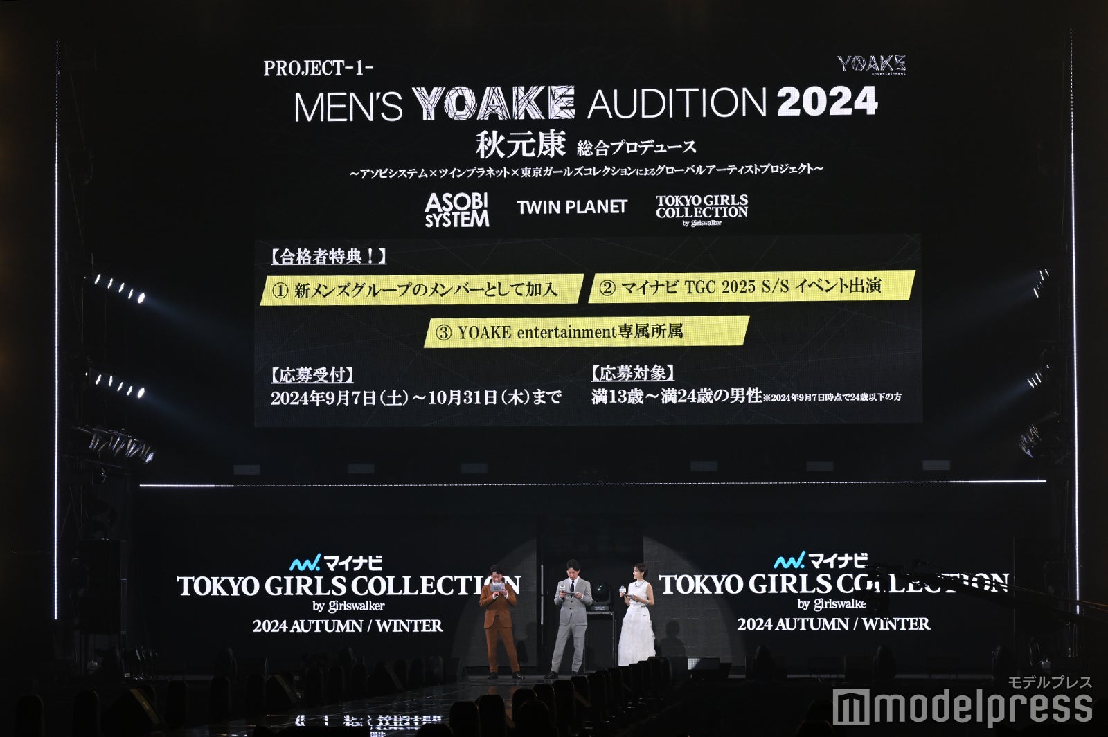 秋元康氏が総合プロデュースを手がける、次世代型メンズグループオーディション「MEN'S YOAKE AUDITION 2024」が始動する。2日、埼玉・さいたまスーパーアリーナで開催された「第39回 マイナビ 東京ガールズコレクション 2024 AUTUMN/WINTER」で発表された。