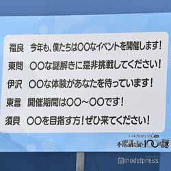 最後に、用意された文章の穴を埋める形で同イベントのPR文を制作する企画が行われ、ふくらPは「今年も僕たちは“寥郭(りょうかく)たるイベント”を開催します!」、東問は「“塵芥集の条文ほど膨大”な謎解きに是非挑戦してください!」、伊沢は「“別有天地非人間”な体験があなたを待ってます!」、東言は「開催期間は“愛知のイチジクの日〜国産ナス消費拡大の日”です!」、須貝は「“金声玉振”を目指す方!ぜひ来てください!」とQuizKnockならではの回答をして会場を沸かせた。(modelpress編集部)