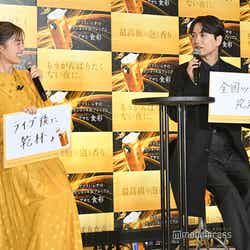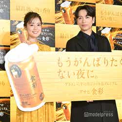 引き続き、同商品のCMキャラクターを務め、9月24日より放映開始される新CMに出演する生田は、同商品をイメージしたゴールドのワンピース姿で登場。同商品のCMに出演して変化したことはあるか尋ねられた生田は「もともとビールを飲むのが好きだったんですけど、アサヒ食彩と出会ってからはよりご褒美だというわくわく感だったり、アサヒ食彩とともにご飯も美味しいものを食べてみようとか、頑張ったご褒美という感覚は大きくなりました」と打ち明けた。その後、同商品で乾杯をして一口飲むと、生田は「贅沢ですね」と声を弾ませ、山崎も「この時間から贅沢ですね」と笑顔を見せた。(modelpress編集部)
