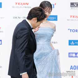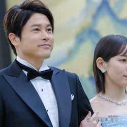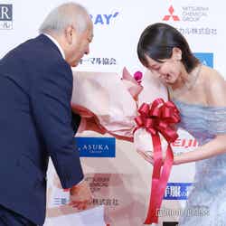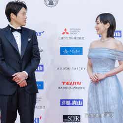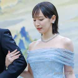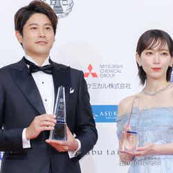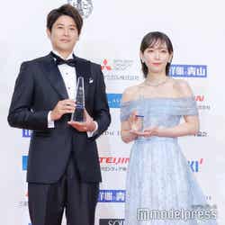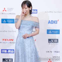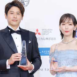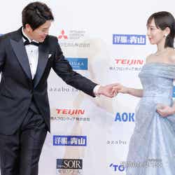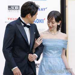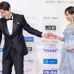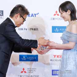 同賞は、より豊かで充実したフォーマルシーンの普及を目的に、各界の著名人から「高い品格性、話題性」があり、「フォーマルウェアを素敵に着こなせる」男女各1人を選出し、表彰するもの。女性部門を吉岡、男性部門を内田が受賞した。吉岡はペールブルーのオフショルダードレス、内田はブラックのタキシード姿でステージに登場。内田が吉岡をエスコートし降壇、会場をゆっくりと一周歩くと、再び壇上に上がった。吉岡は「私も正式な、こういった華やかな場所でスピーチをさせていただいたりですとか、ヘアメイク、そしてスタイリングなどなど、ドレスをまとわせていただくような機会というのは多いんですけれども、やはりフォーマリスト協会の皆様に見られていると思うと、ちょっと背筋が伸びる思いです」とコメント。続けて「裾の広がりがあるようなタイプのドレスというのは、会場を色々歩いたり、こうやって見せても良い場所でないとできないということもあって、なかなか着てみたくても着られないデザインだったりするので、憧れの裾を翻しながら、しかもエスコートしていただいて、すごく幸せな時間でした」と笑顔を見せた。