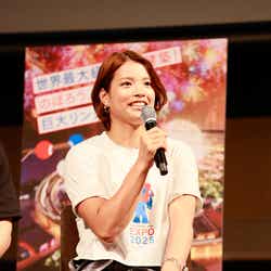 第2部では、タレントのゆうちゃみ、ゆいちゃみが大阪・関西万博のデザインがあしらわれたシャツを着て登壇。10月12日にスペシャルサポーターになったばかりの2人が、大阪・関西万博公式キャラクター「ミャクミャク」と2005年に開催された愛・地球博公式マスコットキャラクター「モリゾー&キッコロ」をステージに呼んだ。「いのち輝く未来社会のデザイン」をテーマとする大阪・関西万博と、「自然の叡智」をメインテーマに掲げ、循環型社会を目指したさまざまな取り組みを行っていた愛・地球博との関連性を念頭に、ゆうちゃみは「SDGsの達成を目指す想いが脈々と繋がっていますね!」と語った。