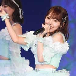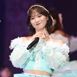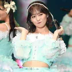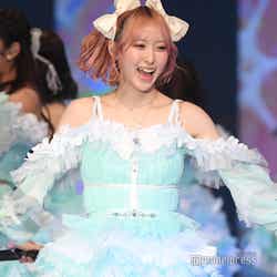 「≠ME meets FASHION -winter edition-」のトップバッターを務めたのは、グループの圧倒的センター・冨田菜々風。ランウェイトップでは目線をクールにそらし、存在感を放った。続いて登場した谷崎早耶は、ホワイトの短丈トップスでウエストをチラ見せ。同系色のパンツ、トレンチコート合わせて登場。普段の可愛らしい雰囲気からガラリと変えたクールな表情で魅了した。