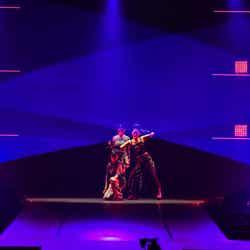 IS:SUEの3人は「ガルアワ」初ランウェイを飾り、個性的な色合わせのコーディネートをスタイリッシュに着こなし。RINOとYUUKIはミニ丈トップスから美しいウエストラインを、NANOはミニ丈ボトムスから美しい脚を披露していた。また、グループとしてアーティストステージにも出演。11日より活動を休止しているRIN(会田凛)は不在となったが、3人で全身全霊のパフォーマンスを見せていた。