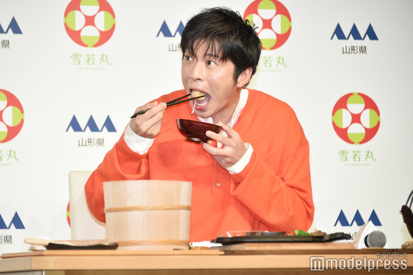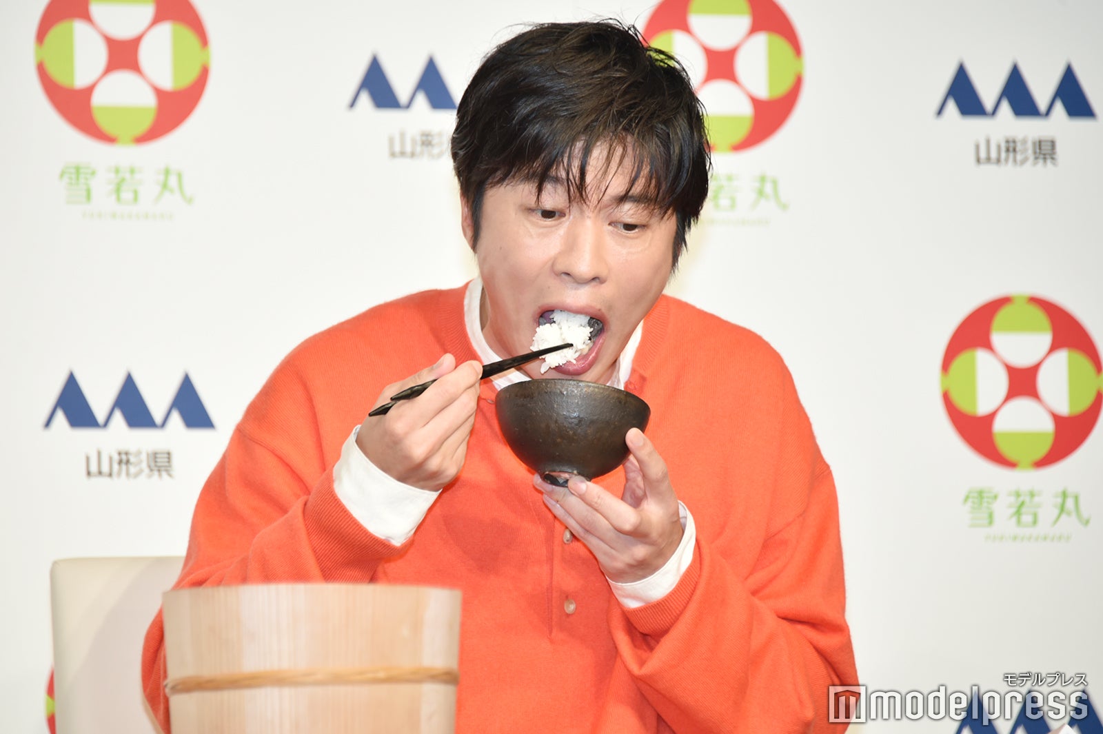 俳優の田中圭が22日、都内で行われた山形のお米「雪若丸」新CM発表会に出席。新米を試食した。