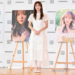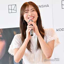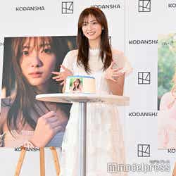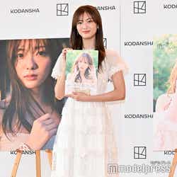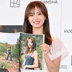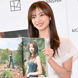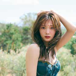 お気に入りにはデニムのセットアップを着用したカットを挙げ「先行カットにも出ていたんですけど、メンバーからも好評で、1st写真集は日本で撮ったんですけど、今回の大きな違いはアメリカのサンタフェという場所で撮ったことかなと思っていて、アメリカらしさもすごく出た1枚なのかなと思います」と満足げな表情を浮かべ、「リップの色も生えていて、ヘアメイクも個人的にお気に入りですし、アメリカの緑がいっぱいの場所で着るデニムのセットアップが私のお気に入りポイントです」とアピールした。撮影でこだわったポイントについては「サンタフェは海がなくて、とても緑が多い自然豊かな場所なんですけど、そういうところに合う衣装をみなさんと一緒に選ばせていただいたり、緑が多いからこそ、逆に普段そういうところで着ないようなドレスのようなものでギャップみたいなところも多く作ったかなと思います」と明かした。