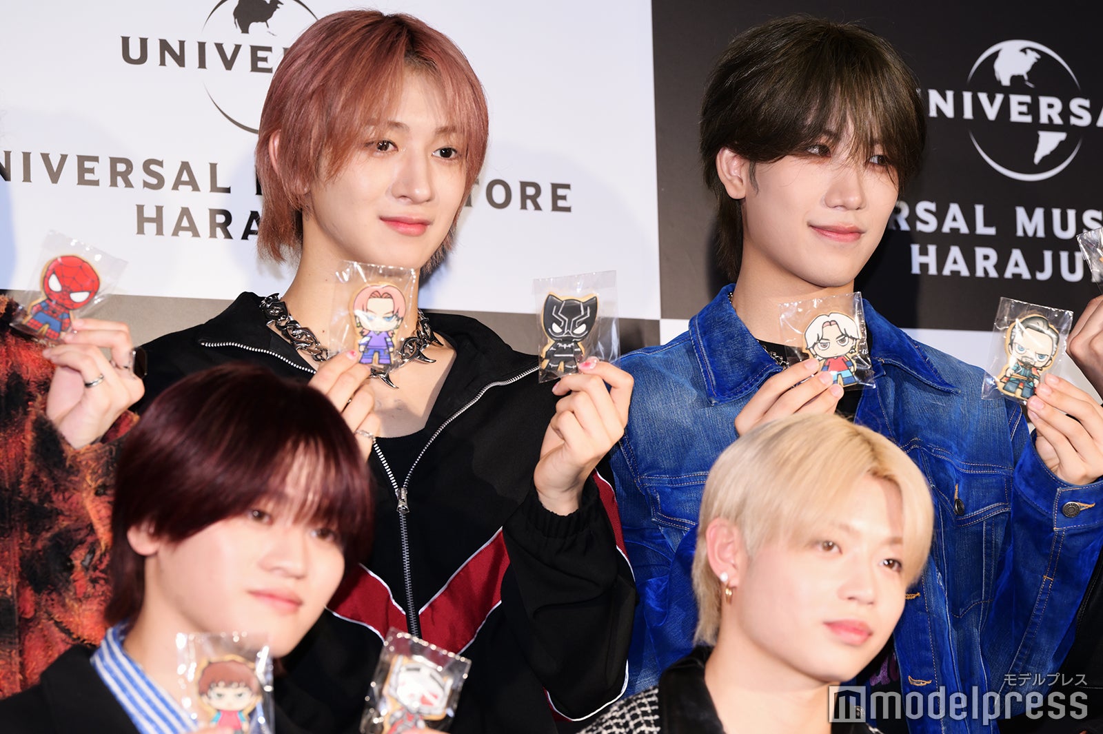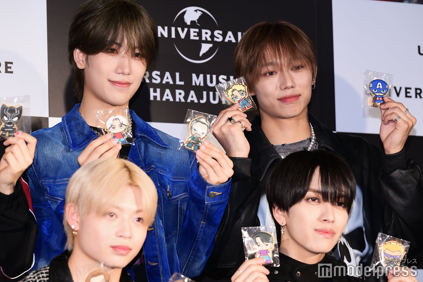 改めてMKAIRYU(カイリュウ)は「スーパーヒーローが大好きなので。っていうことはMARVELヒーローは好きに決まっているので。中でも、小学生の時にトビー・マグワイアさんの『スパイダーマン』を見て、将来の夢はスパイダーマンやったくらい、本当に大好きなので。とんでもない人生、自分歩んでるわって思えることの1つですね。MARVELとコラボできたのは」「こんなに早い段階でできて、めっちゃ嬉しいです」とコラボに喜び。HAYATO(ハヤト)は「魔法を使うキャラがすごく好きで。今回はドクター・ストレンジさんと一緒にコラボさせていただいて(笑)。今、最新作の『アガサ・オール・アロング』という番組があるんですけど、それも魔法を使っている作品で。毎週毎週楽しみにしているMCU(マーべル・シネマティック・ユニバース)という、MARVELという方々に関われることが本当に嬉しいです」と語った。RYUKI(リュウキ)は「先ほど自分たちも拝見させていただいたんですけど、MARVELの可愛さとMAZZELの可愛さがマッチしているなというか。ここ原宿POP STOREから全世界の皆さんに、この可愛さだったり、かっこよさを知っていただけるようなPOP UPになっているなと思ったので、ぜひ皆さん遊びに来てください」と呼びかけていた。当日は、MAZZELにサプライズで、それぞれのビジュアルがデザインされたクッキーが贈られる一幕もあった。(modelpress編集部)