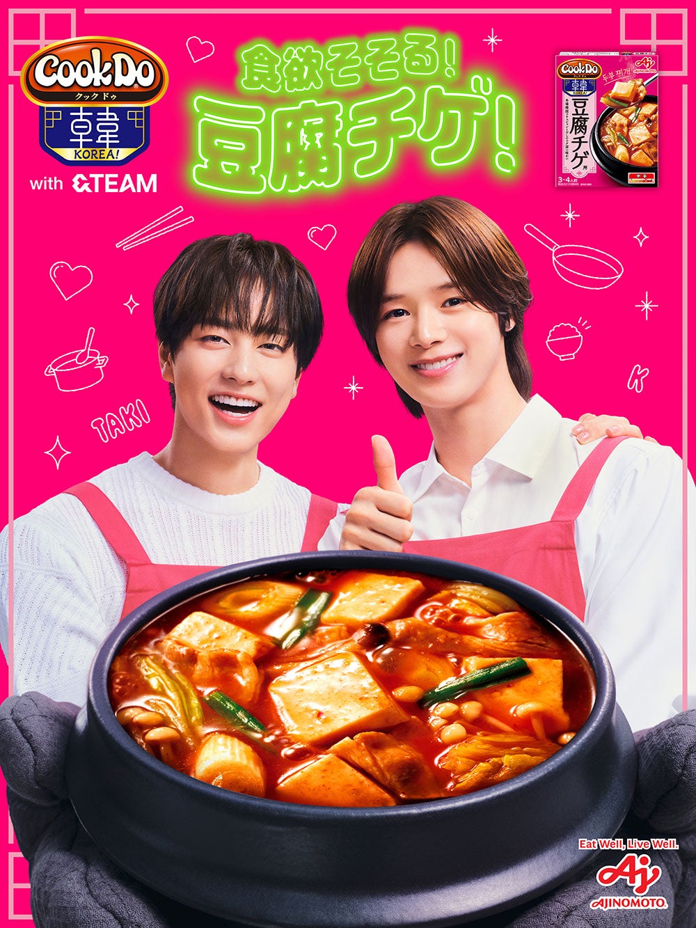 グローバルグループ・&TEAM(エンティーム)が出演する「Cook Do(R) KOREA!」の新テレビCM「豆腐チゲ+タッカルビ」「プルコギ+ヤンニョム篇」が、11月7日より全国で放映される。