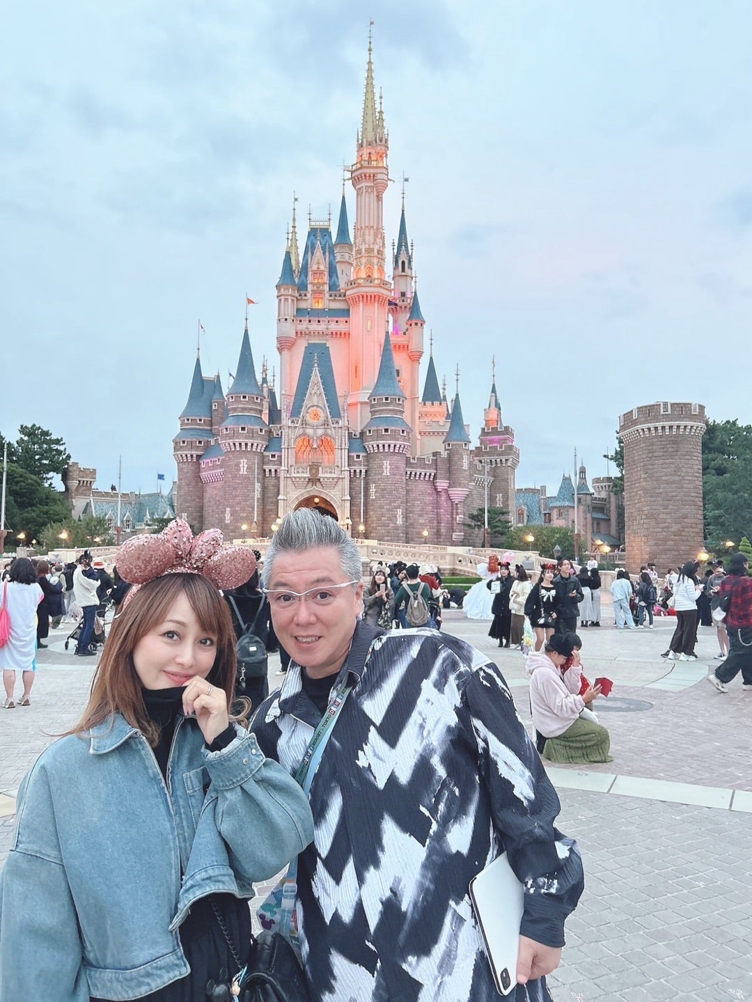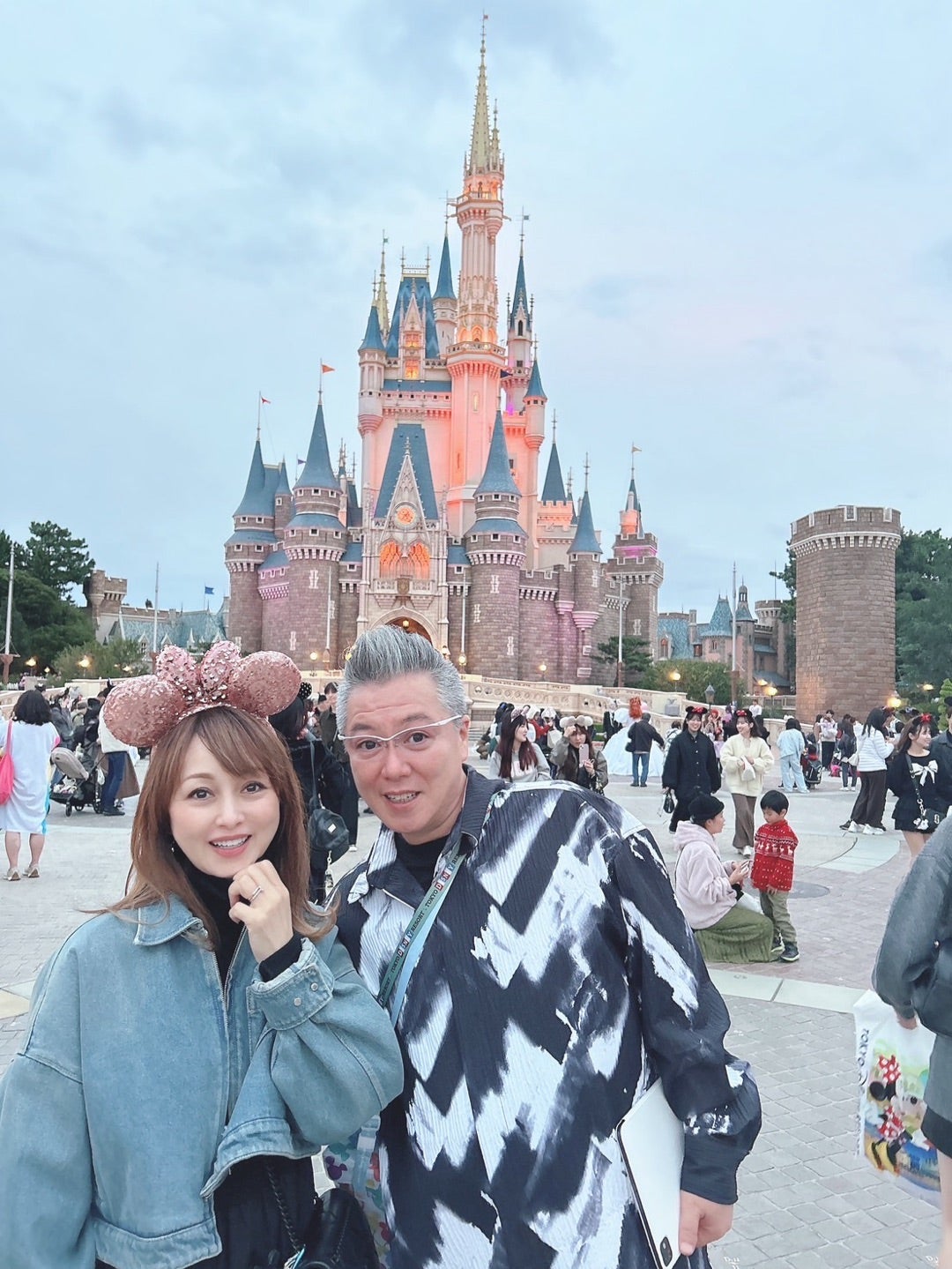 歌手でタレントの渡辺美奈代が11月5日、自身のオフィシャルブログを更新。夫・もやしくん(愛称)とともにディズニーランドへ訪れたことを明かし、仲睦まじい夫婦ショットを公開した。