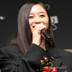 五百城は登場シーンを振り返り「フォトシューティングされてる方の映像を見たりしたらすごくかっこよかったので、今回黒の素敵な衣装やすごい素敵なアクセサリーも身にまとわせていただいて、それを身に着けた私たちをかっこよく表現できていたらいいなと思います」と笑顔を見せていた。