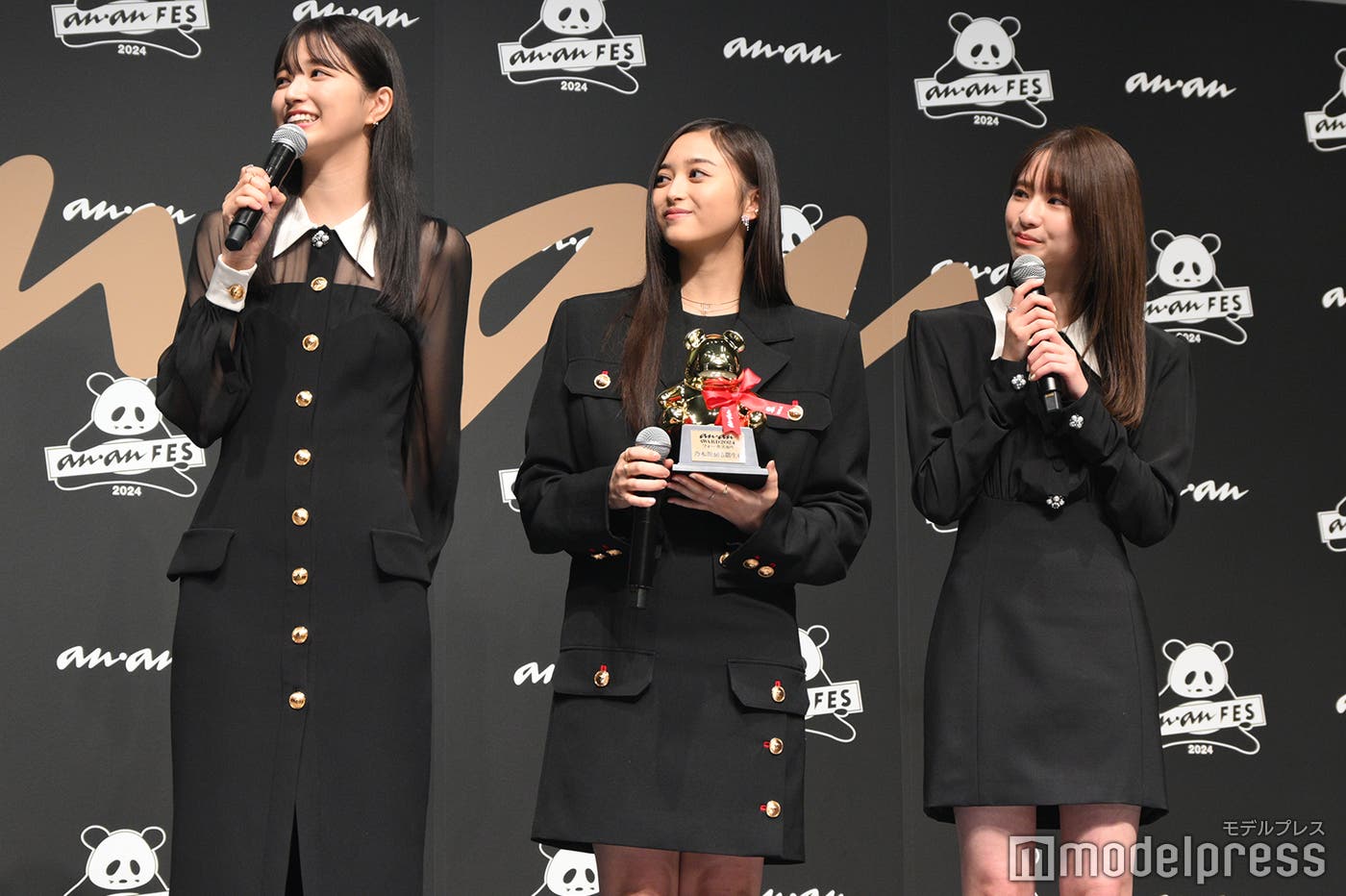 乃木坂46 5期生「anan AWARD」受賞 五百城茉央・井上和・菅原咲月が美脚際立つ衣装で授賞式登場【anan AWARD 2024】