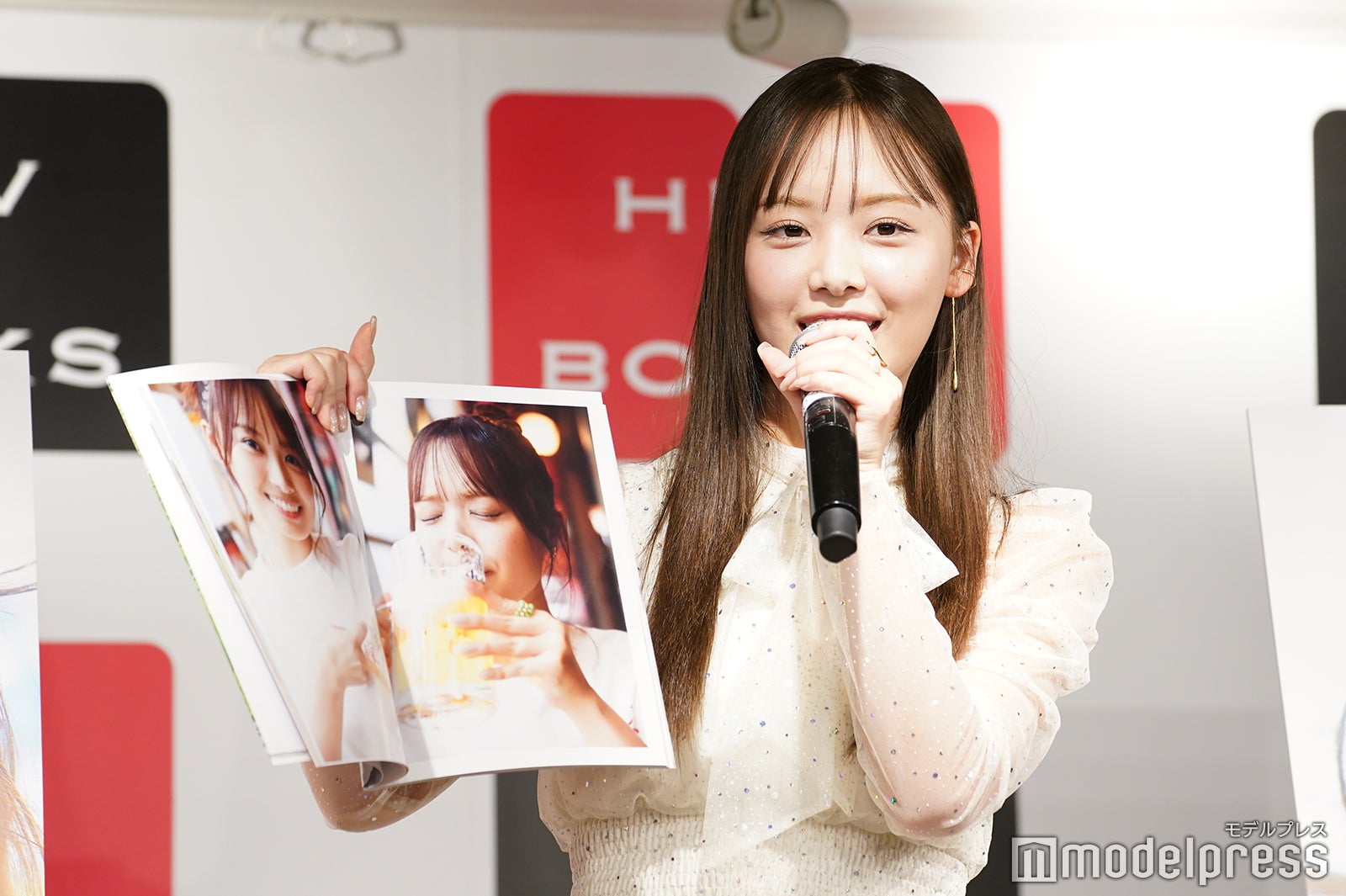 ホワイトの可愛らしいワンピース衣装で登場した濱岸。「(記者会見が)初めてなのですごく緊張しています。うまくできるか分からなかったので、同期の小坂菜緒に記者会見の練習を手伝ってもらいました。小坂が記者役をやってくれて私と質疑応答を昨日ずっとしてもらいました」とエピソードを明かした。見どころを尋ねられると濱岸は「男性も女性も楽しめるような写真集になっています。ファッション誌的な要素もあって女性も楽しめたり、ちょっとヘルシーな写真もあったり、いつものアイドルの写真にはないような大笑いしている私があったり、かなり大人っぽい表情の私とかもいたりしてそこが見どころなのでぜひチェックしてほしいです」と目を輝かせた。