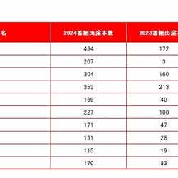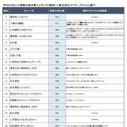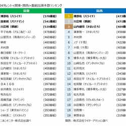 2024年の番組出演本数ランキング<関東><関西>の1位にはともに澤部が輝いた。お昼の帯番組「ぽかぽか」に加え、4月からスタートの「世界頂グルメ」や「いくらかわかる金?」にもレギュラー出演するなど、上半期の勢いをそのままに駆け抜け、初の年間1位となった。<関東>2位には設楽統(バナナマン)、<関東>3位には川島明(麒麟)と、ランキングの常連とも言える2人が続いた。また、<関東>4位には、平子祐希(アルコ&ピース)がランクイン。レギュラー番組の「プチブランチ」をはじめ、数々のバラエティ番組に出演し、昨年から70本以上増やしたことで19位から大きくランクアップした。