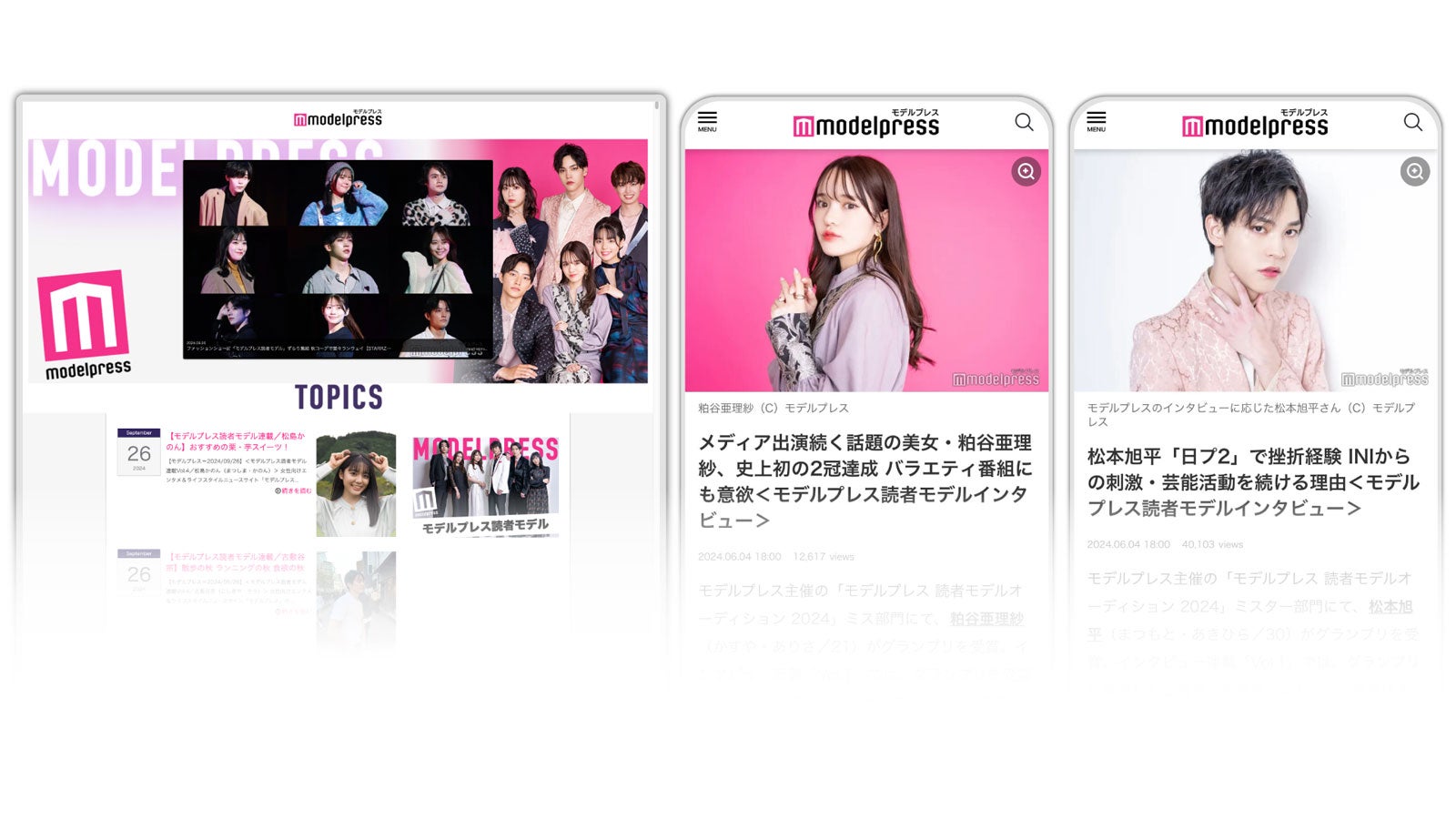 日本最大級の女性向けニュースサイト「モデルプレス」が主催するオーディション。授賞者は【モデルプレス読者モデル】として連載ができるほか、雑誌出演のチャンス、プロのヘアメイクとカメラマン撮影で「モデルプレス」WEB表紙を飾れるなどモデルプレスならではのプライズを用意。