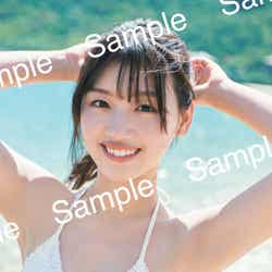 本写真集には、メッセージ付きポストカードがランダムに封入。絵柄の第2弾は、本人も「本当にこんなにメイクしないで撮影するんだ!」と驚いた、朝のすっぴんカット。まだ眠そうな表情とナチュラルな雰囲気が、透明感抜群な1枚に仕上がっている。佐々木美玲、1st写真集「陽射しのパレード」
