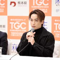 記者発表会には、「TGC」を代表して、数々の話題作に出演する女優の岡崎が、冬に咲く一輪の花を思わせる、凛としてきらびやかなワンピースを身に纏い登場。「TGC」の魅力について「いつも応援してくださる皆さんに会場でお会いできる、そして皆で盛り上がることができる、一体となれるというところが魅力だなと思います。声援もすごくパワーになりますし、皆で一緒に楽しんでいるということを感じることができます」と語り、今回で3開催連続出演となる「TGC熊本」や、開催地である熊本県での思い出については「いつも楽しみにしているのがバックヤードで出るケータリングなんですけど、本当に美味しいものがたくさんあって。『あか牛どん』が前回出たんですけど、人気で争奪戦だったんです。なので来年も出てくれたら嬉しいなって、今から狙っています」「プライベートでは、ずっと行きたいと思っていた『上色見熊野座神社』に行けたのが本当に嬉しかったです。異世界なんです、本当に。そこに行くと空気がガラッと変わって。ご利益をいただけたと思います」とトーク。最後に「皆さんとお会いできるのを私たちも本当に楽しみに待っています。いつもパワーをもらっているので、私たちもそのパワーをお返しできるように、一緒に楽しめたらなと思います。是非楽しみに待っていてください!」と意気込みを語ったTETSUYA、地方創生プロジェクトへの思い語る