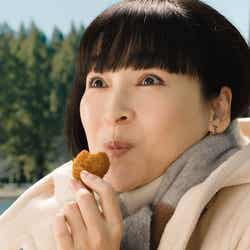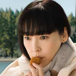 たまたま居合わせたベンチで「はあぁ~」と大きなため息をつく、“マドンナ”役の麻生に向かって、塙が「お嬢さん、年明け早々ため息かい?」と声をかけるシーン。心配そうにセリフを言う優しさ一杯の演技と、子どものように商品を頬張る姿とのギャップに、カットがかかった直後には麻生が思わず「あはははっ!」と手を叩いて爆笑。塙も、無邪気な麻生の姿につられて照れながらもにっこり。“寅さん”と“マドンナ”の掛け合いを彷彿とさせる自然なやり取りに、撮影現場もほっこりとした空気に包まれた。麻生が「こたつの中でずっとゴロゴロしていたいな~」とつぶやくシーン。大人はつらいよを表現するように、今にも泣き出しそう顔で演じたファーストテイクでは、麻生が「ちょっと暗すぎましたかね(笑)」と確認すると、監督は「ため息をついた後なので、それぐらいがいいと思います」と、すかさずOKサイン。麻生自身、本CMで演じた“マドンナ”役と同様に「寒い時はベッドに入ってぬくぬくして、お家で自分の好きなことをしていたい派」だと明かす一幕も。その後も次々と自然なお芝居を披露する麻生であった。