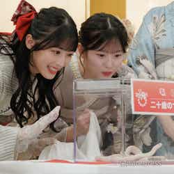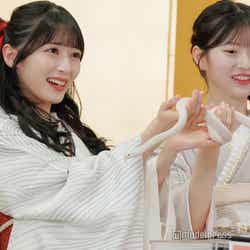 報道陣に対しては、司会から「もしかしたらメンバーが泣いてしまうかも」と予告されていたが、メンバー一同は余裕の笑顔。「佐藤さんと八木さん、持てそうですか?」とハクさんを手に持つことを提案されると、「はい!」と即答。ハクさんを持っての撮影では、着物へ絡みつくハクさんにメンバーは盛り上がっていた。(modelpress編集部)