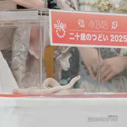 AKB48が毎年恒例で行う「二十歳のつどい」だが、今回はAKB48の20周年イヤー特別企画として、体長1.5メートルの白蛇・ハクさんがサプライズ登場。“特別ゲスト”と称して白い布で覆われた箱が現れると、ハクさんの登場を知らなかったメンバーは「何?」「知らない!」と戸惑っていた。司会の呼びかけに合わせてメンバーが白い布を外すと、透明な箱に入ったハクさんが姿を見せる。一同は驚き、「きゃー!」と叫んだが、直後には「可愛い〜」とハクさんを見つめていた。