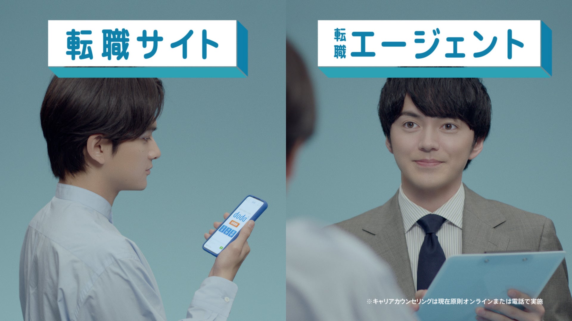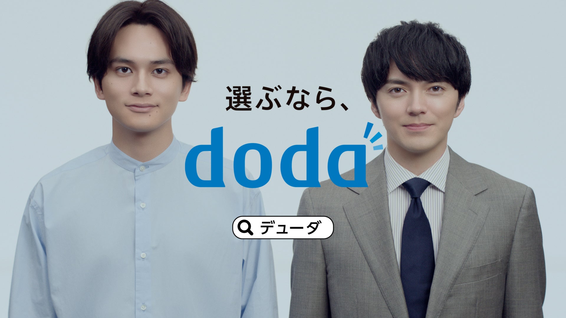 俳優の林遣都と北村匠海が出演する転職サービス「doda」の新CM「選ぶなら、doda」エージェント登場篇、どっちも使える篇、2人に1人が使ってる篇(各15秒)、エージェント登場篇(30秒)が、1月24日より放送される。