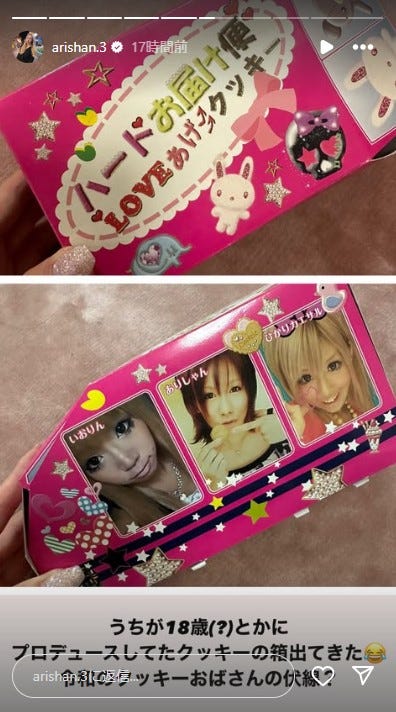 ありしゃんは、「うちが18歳(?)とかにプロデュースしていたクッキーの箱出てきた」とし、写真を公開。パッケージにはクッキーを持った18歳当時のありしゃんの姿がプリントされている。この投稿にファンからは「めっちゃギャル」「可愛すぎる」「ショートカットかな?新鮮!」「こんなクッキー売ってたんだ」と反響が寄せられている。(modelpress編集部)