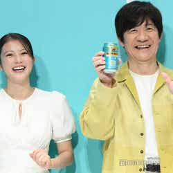 女優の天海祐希、今田美桜が2月6日、都内で開催された「キリンビール 晴れ風」大ヒット御礼発表会に内村光良(ウッチャンナンチャン)、目黒蓮(Snow Man)とともに出席。美しいドレス姿を披露した。