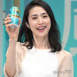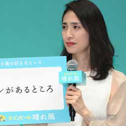 この日は、新CM公開や「晴れ風」のヒットを祝しCMイメージキャラクターを務める4人が、約1年ぶりに同じ会場で再集結。天海と今田は純白ドレス姿で華やかに登場した。天海はざっくりとスリットが入ったドレスで美しい脚をチラリとのぞかせ、今田はパフスリーブが印象的な可愛らしいドレスでほっそりとした二の腕や足首を披露。異なるスタイリングで個性を発揮した。また、会見中には4人で快挙を祝福し「晴れ風」で乾杯。それぞれ噛みしめるように一口飲むと「ありがとうございます」と笑顔を見せ、商品のヒットについて喜びを語る中、天海は「個人的なことなんですけど、昨日ネイルサロンに行きまして」と切り出し「ネイリストのお嬢さんが『晴れ風、いつも飲んでます』って声をかけてくださって、20、30分話が弾みました」とプライベートでのエピソードを明かした。