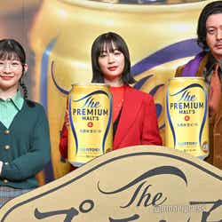 本CMシリーズは「ちびまる子ちゃんがプレミアムな大人になったら?」というオリジナルストーリーを描いた作品。プレミアムなまるちゃん役を広瀬、プレミアムなたまちゃん役を伊藤、プレミアムな花輪クン役をオダギリが務める。同ブランドのメッセンジャー3年目となる広瀬は「すごく嬉しいですし、こうして仲間が増えたことも嬉しいです」と笑顔。今回、新たに仲間入りした伊藤は「お家でも飲ませていただいているものなので、まさかの出来事で嬉しかったですけど、そのままおいしいこととか、プレミアム感を表現すればいいんだと思って嬉しかったです」と声を弾ませた。