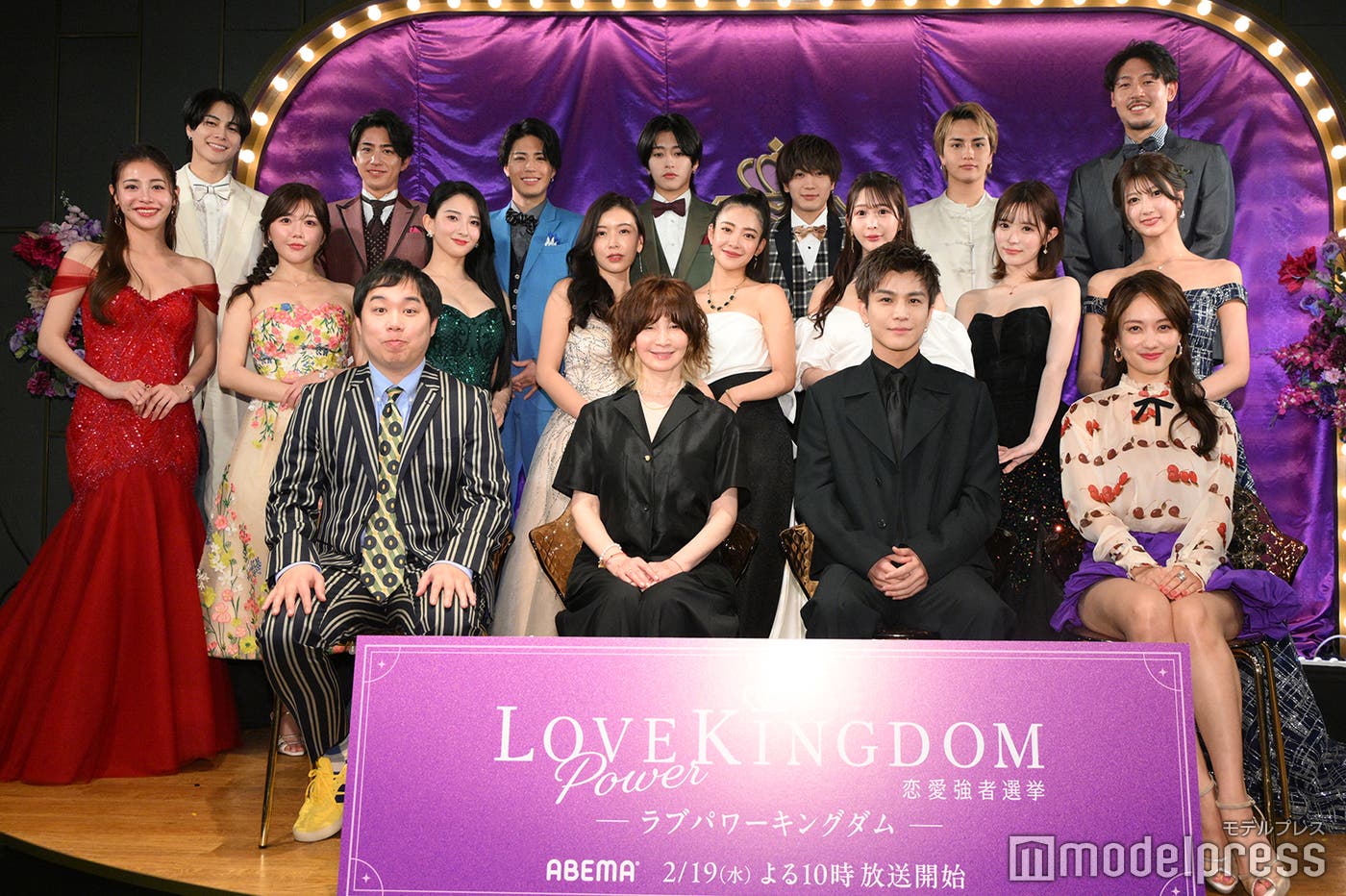 “一番モテる人”を決めるABEMAのオリジナル恋愛リアリティーショー「LOVE POWER KINGDOM〜恋愛強者選挙〜」(ラブパワーキングダム)が2月19日よる10時よりスタート。同日都内で放送直前会見が行われ、参加者の15人のほか、MCの霜降り明星・せいや、YOU、三代目 J SOUL BROTHERS/EXILEの岩田剛典、谷まりあが出席した。