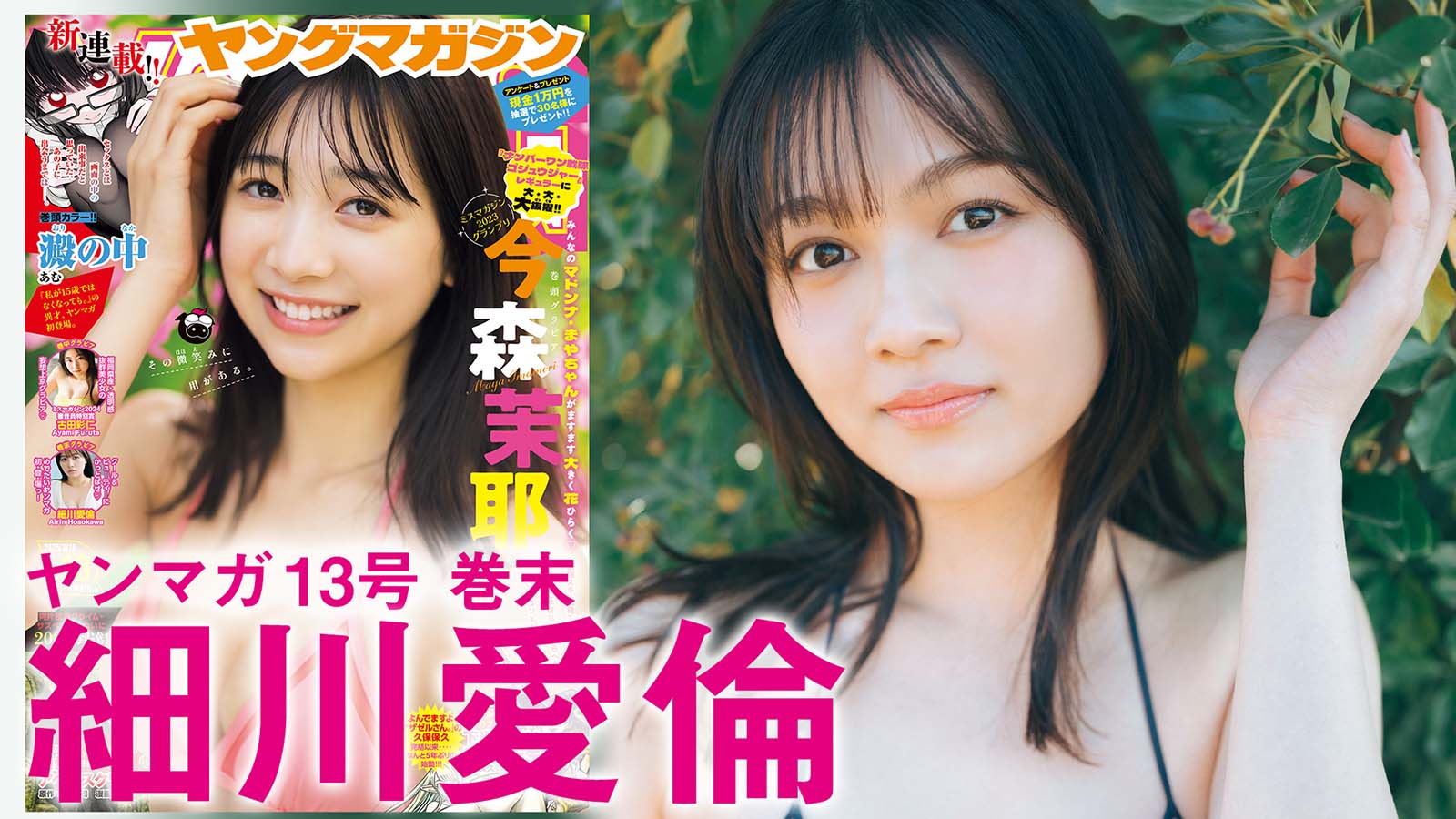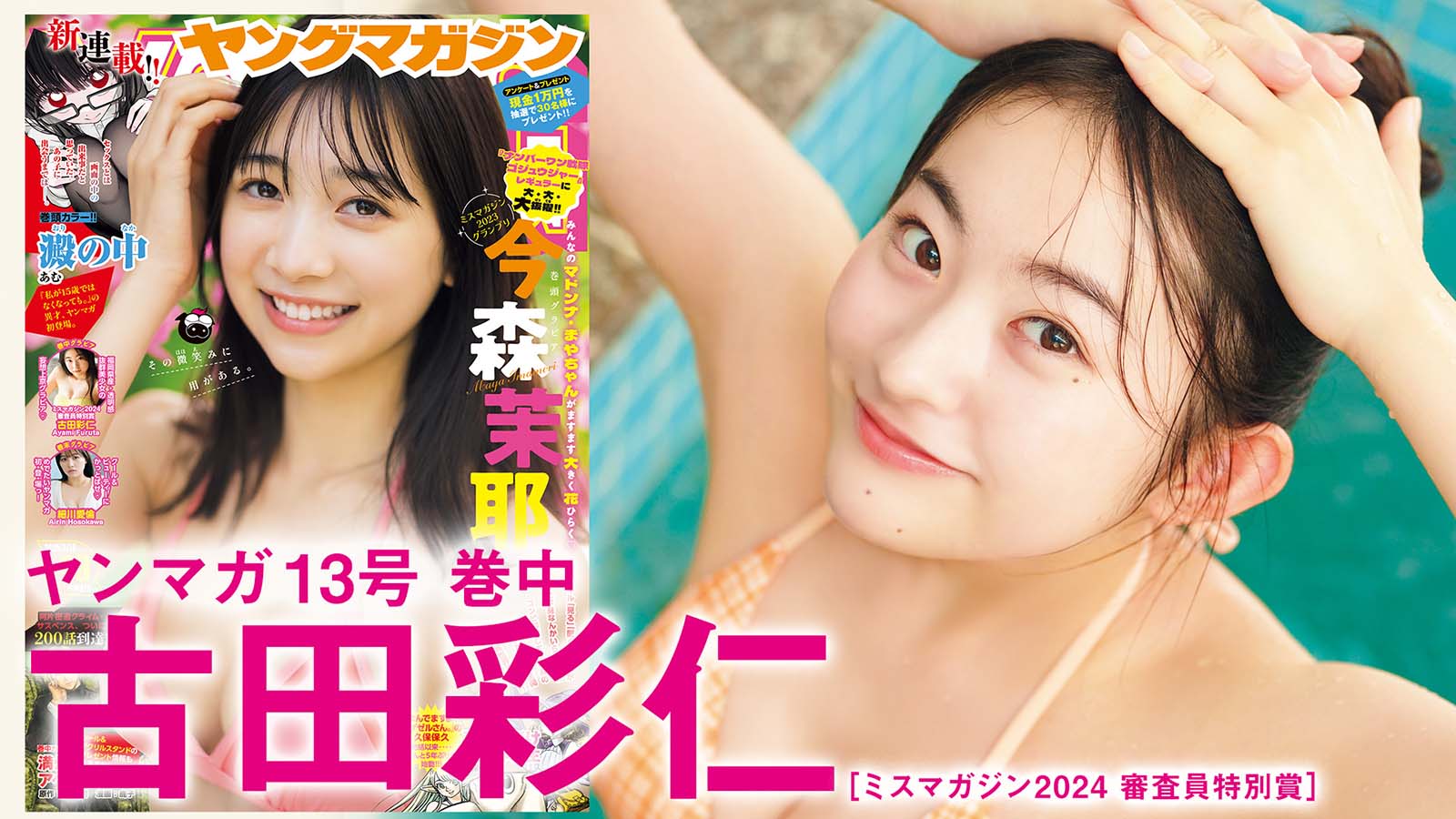 「ミスマガジン2023」のグランプリで、最近では映画やCM、ドラマなど活躍の幅を広げ続ける今森。久々のソロ登場となる今号では、淡いカラーの水着・ランジェリー姿で爽やかなグラビアを披露。弾ける笑顔とふんわりとしたバストで魅了している。古田彩仁&細川愛倫も登場