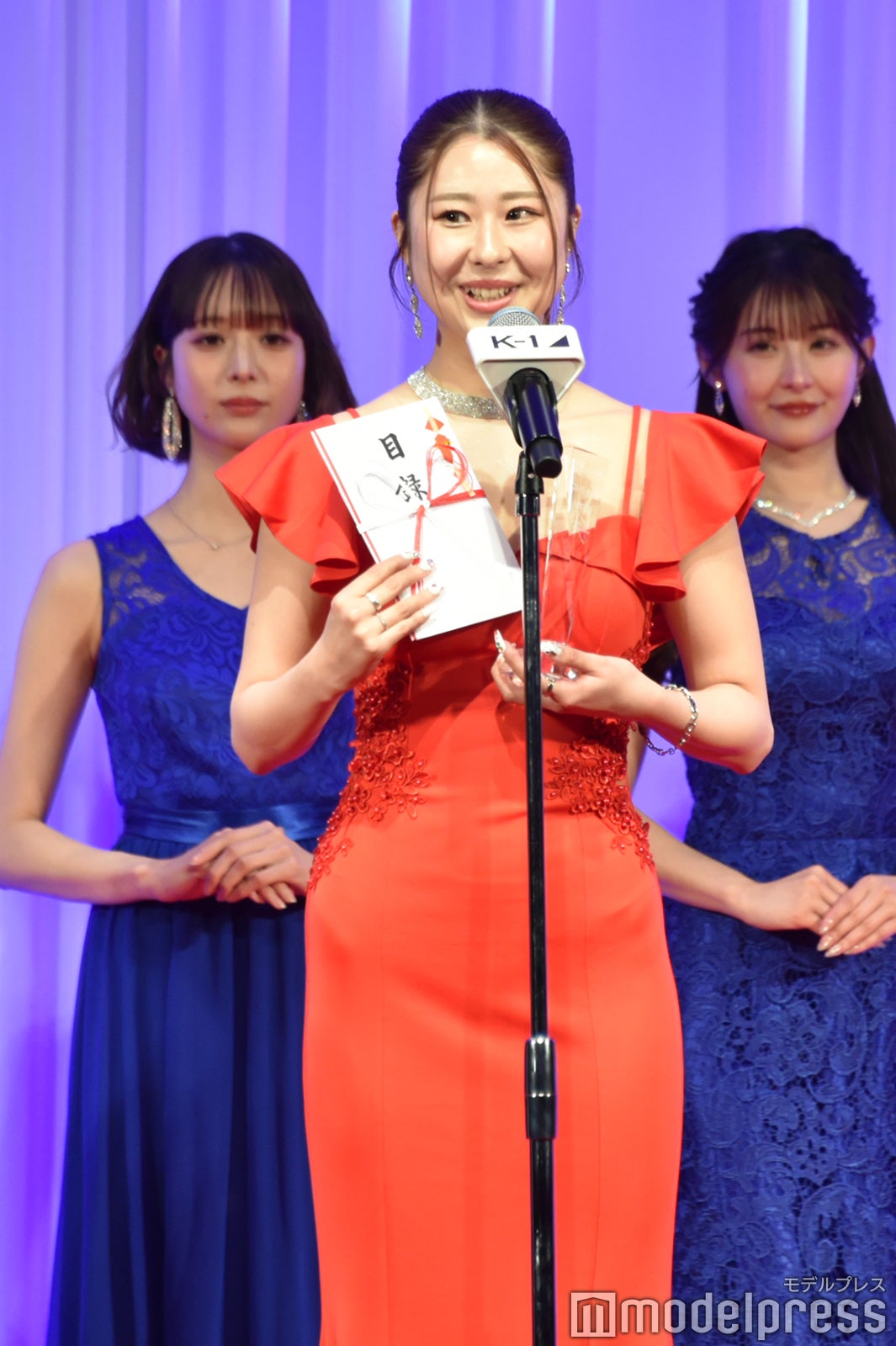 K-1 GIRLS、Krush GIRLSの中からもっとも貢献した者が選ばれる同賞。冨樫には、プレゼンターの株式会社サイバーエージェント代表取締役・藤田晋氏からトロフィーが授与された。2年連続でKrush GIRLSを務め、幅広くKrushの普及に寄与したことが評価された冨樫は「まさか自分が選ばれると思っていなかったため、本当に嬉しいです」と喜びのコメント。「この賞は私個人じゃなくてKrush GIRLSでいただいた賞だと考えています」と伝え、「本当に私なんかでいいのかなと思っているんですけど、ありがとうございます」と感謝した。