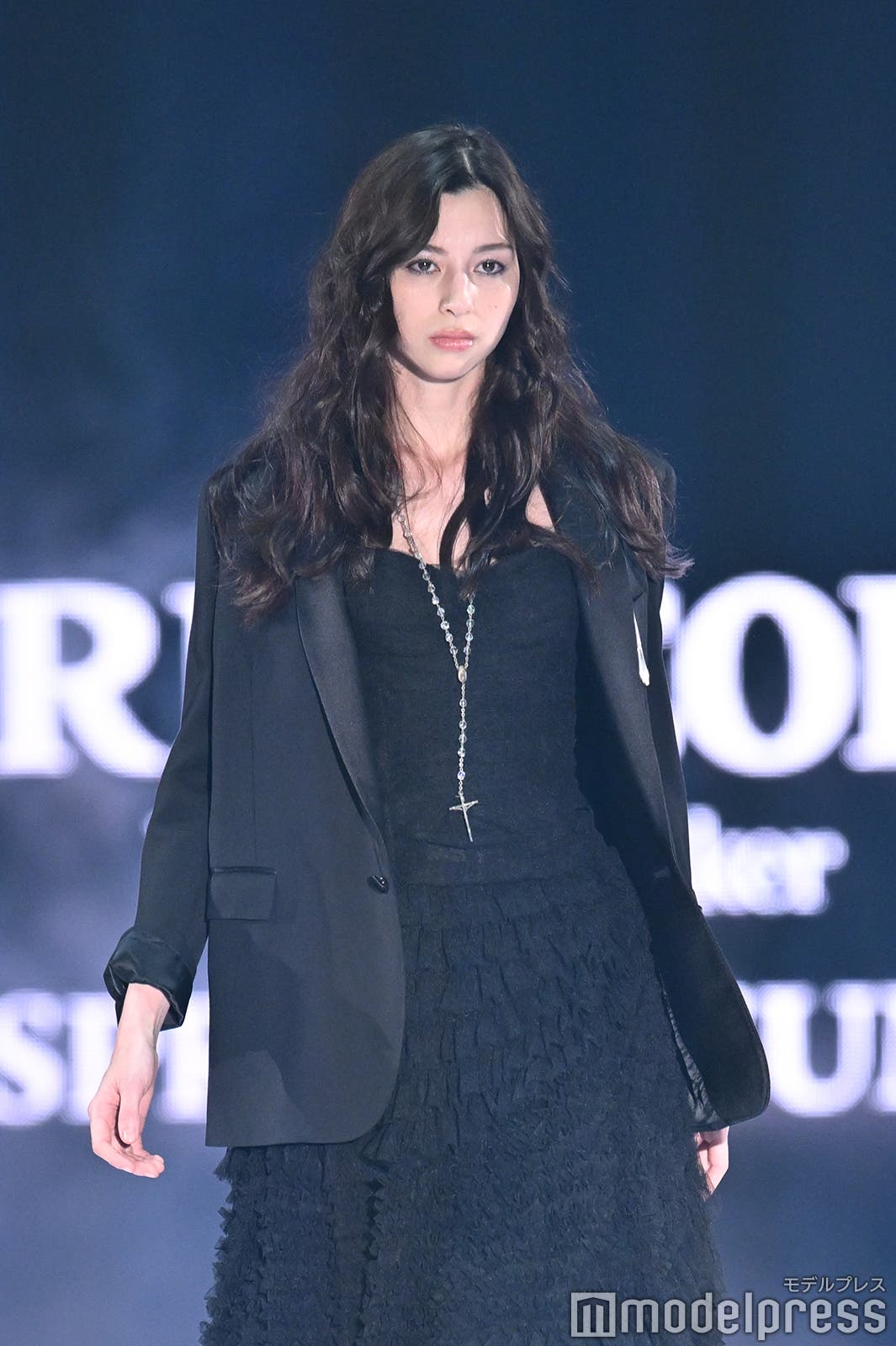 2024年の「TGC2024S/S」に続き、2年連続でトップバッターを飾った中条。オープニングのファッションショー「TGC SPECIAL COLLECTION」は、⽇本を代表するスタイリストの⼀⼈、野⼝強⽒によるスタイリングショーとなり、ブラックドレスを纏い華やかにランウェイを闊歩した。ランウェイトップでは、羽織っていたジャケットを下ろしキャミソールタイプのドレスから美しい背中を惜しげなく披露。クールな眼差しと圧巻のスタイルで会場の視線を集めた。