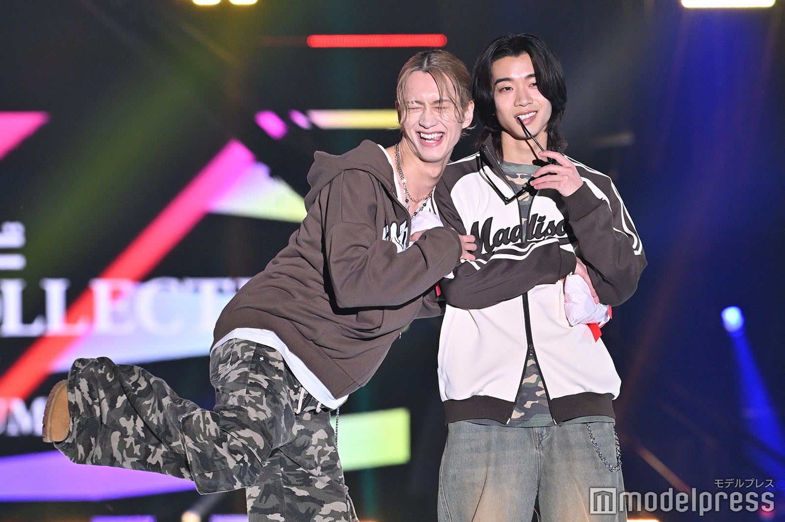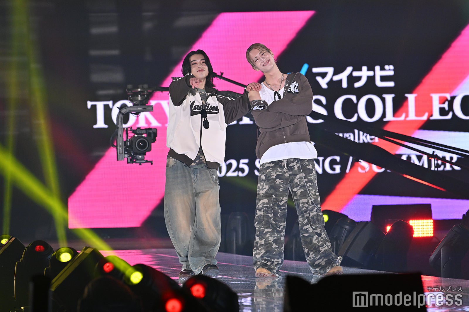 「REVIVAL CULTURE REMIX」をテーマにしたステージで、ブラウンコーディネートを披露した2人。トップではもーりーがしゅーとに密着。頭を寄せ合い、もーりーがしゅーとの頭をポンポンしたり、2人で大きなハートを作ったりとファンサービス満載のランウェイとなった。「TGC」20周年 テーマは「HERE WE GO!」
