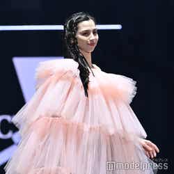 同イベントのトップバッターを飾った中条。2度目のステージでは、オープニングのブラックドレス姿とは打って変わり、ピンクとグリーンの鮮やかなチュールドレスで美しい脚のラインをのぞかせるとともに、存在感を残した。「TGC」20周年 テーマは「HERE WE GO!」