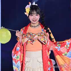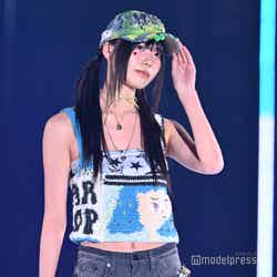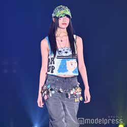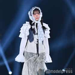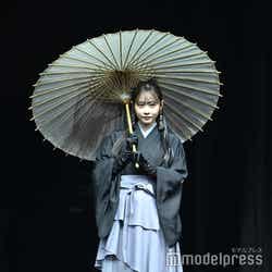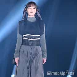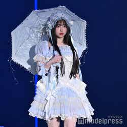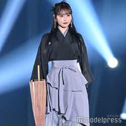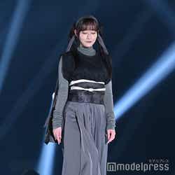 アイドルとファッションの融合を実現する同イベントは、2023年以来、2年ぶり2度目の開催。MCは村重杏奈、お笑いトリオ・ハナコ。出演者は乃木坂46の梅澤美波・筒井あやめや日向坂46の佐々木久美・佐々木美玲、FRUITS ZIPPER(フルーツジッパー)、CUTIE STREET(キューティーストリート)、≠ME(ノットイコールミー)など。トップバッターを飾ったのはFRUITS ZIPPERの櫻井優衣。白い和傘を持ち、黒の着物のようなトップスにフリルスカートを合わせた個性的なルックでステージに降臨した。