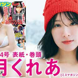 「ミスマガジン2024」グランプリ受賞から早くも半年が経ち、ますます美しさに磨きがかかる“くーちゃん”こと葉月。今号ではソロ表紙に再登板し、雪景色の中でしっとりとしたグラビアを撮影。水着姿のカットでは、くっきりとした美しい谷間を披露している。田中きずならも登場