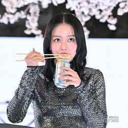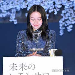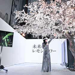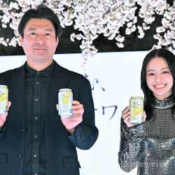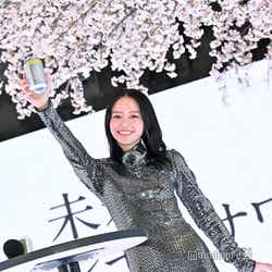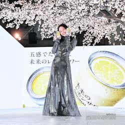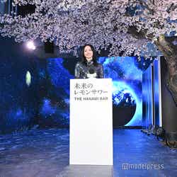 この日、背中がざっくりとあいたドレス姿で登場した山本。約4mの桜の造花を目にすると「通行人の方々もびっくりしますよね。109の目の前で(渋谷の)ど真ん中で変な緊張感があります」といい、「今まで渋谷のど真ん中にLEDと桜の木が1本立ってるって見たことがなかったので、五感で楽しんでいただけたらなと思います」とアピールした。また、レモンサワーはあまり得意ではないという山本だが「(同商品は)本当に美味しかった!さっき打ち合わせ中も飲んでいました(笑)」とすでに一杯ひっかけてきたことを告白し、同イベントでも乾杯をして一口飲むと「本当に飲みやすくて、レモンのすっきりとした味と、“お酒だ…”って感じがそんなになくて、(プレーンは)甘くないんですよね。でもオリジナルはちょっと甘くて、私はさっきオリジナルを飲んでからここにきたんですけど、甘くて美味しかったですね。女性はオリジナルのほうが好きなんじゃないかな。2本飲んできました」とぶっちゃけて会場の笑いを誘った。