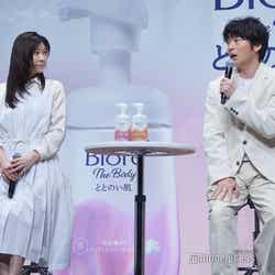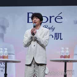 俳優の田中圭が12日、都内で行われた花王「ビオレ ザ ボディ」新商品CM発表会に、女優の篠原涼子と橋本環奈とともに出席。最近人生でMAX体重になったというエピソードを明かした。