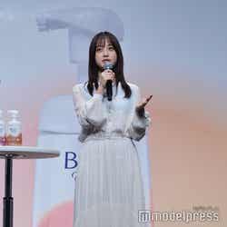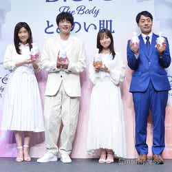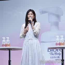 新商品のイメージキャラクターを務める3人。この春から新たに挑戦したいことを問われると、「筋肉量を増やす」と答えた田中。「すごく悔しい思いをしたばっかりなんですよ。3日後に事務所の運動会があるので、運動をしなきゃいけないんですよ。急に運動して怪我したらできなくなるので、トレーニングをしていたんです。でも時間があるから夜映画観ながらお菓子とかを食べたりしてて、ちょっと前に体重が人生でMAXだったんですね。でもトレーニングもしているから大丈夫かと思って久しぶりにジムに行って測ったら、筋肉量だけ減って、脂肪だけ増えてたんですよ(笑)。ただ太っただけじゃん!」と嘆き、さらに続けて「太ったのはいいんですけど、こんだけトレーニングしてて筋肉量が減ったのが許せない!この春は筋肉量を増やしてやろうとメラメラしています。頑張ります」と意気込みを語っていた。また「水分補給」と答えた篠原は「水分補給は絶対的に大切なことなので、表面から何かを塗ったりつけたりしても、内側から潤っていないとお話にならないような気がする。肌だけの問題ではなく、人間は水分が必要だと思いますので、水分補給」と説明した。
