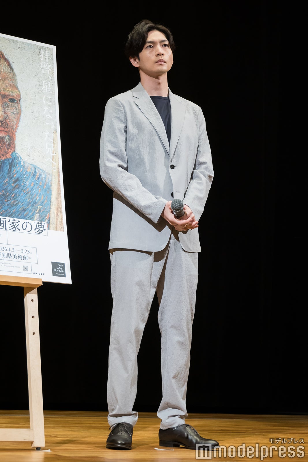 グレーのスーツ姿で登場した松下は、展覧会サポーター就任について「最初にお話をいただいた時は本当に驚きまして、正直、僕で大丈夫だったのかなという不安もあった」と本音。その一方で、「子どもの頃から絵を描くことがとても好きでして、高校までは美術科の学校に通っておりました。そこで油絵をずっと書いていたので、学生の頃はよくゴッホの作品を、本当に少ない時間だったと思いますけれども、僕なりに勉強させていただいたこともあったりしたので、僕自身としても本当にゴッホという存在は特別な思い入れのある画家の一人でもあります」とゴッホへの思いを口にした。3月6日に38歳の誕生日を迎えた松下。27歳で本格的に画家を志したゴッホが37歳で生涯を終えたという話題では、「時代も境遇も違うので、決して同じような人生を歩んできたなどということは畏れ多くて言えない」としつつ、「僕自身も20代の頃はフィンセント(ゴッホ)と同じように、自分の作り出すものが間違ってないとは思いつつも、なかなか多くの方の目に留まらないような経験も少なからずありました」とゴッホと自身を重ねる場面も。